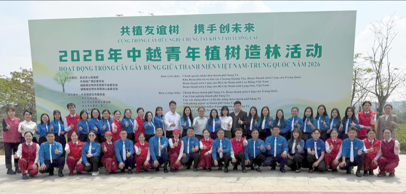 Ngày 12/3/2026, Đoàn đại biểu Đoàn Thanh niên cộng sản (TNCS) Hồ Chí Minh tỉnh Lạng Sơn đã tham dự hoạt động trồng cây gây rừng thanh niên Việt - Trung năm 2026 tại thành phố Sùng Tả, Khu tự trị dân tộc Choang Quảng Tây, Trung Quốc.