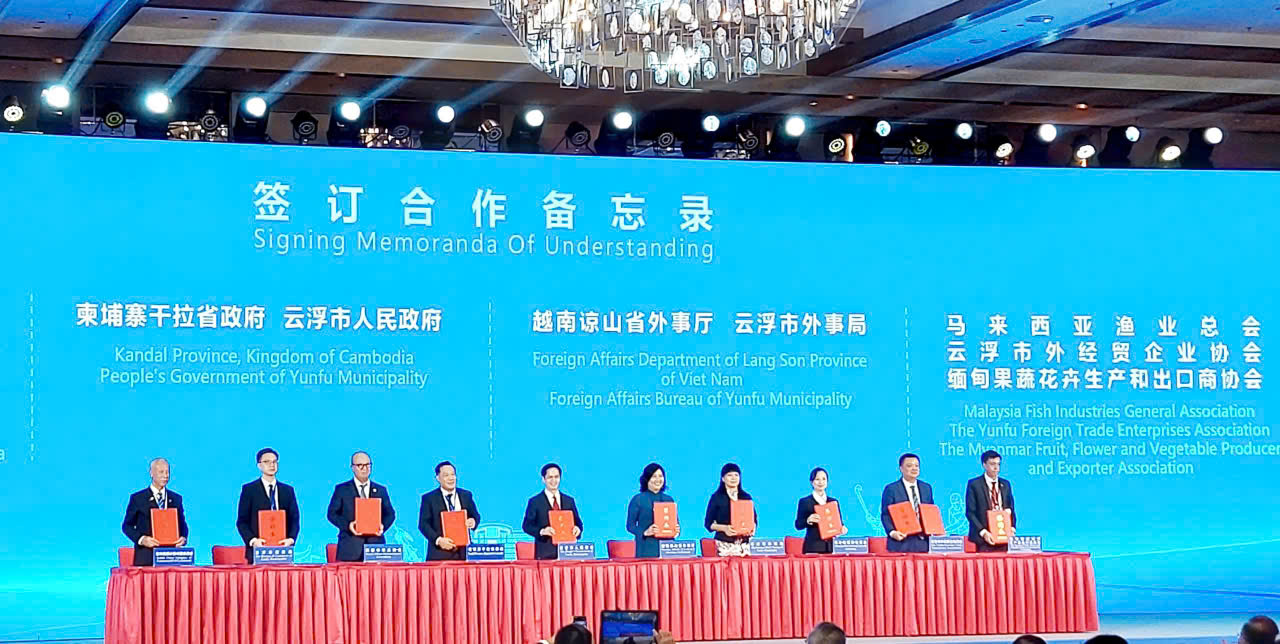 Tại Hội nghị đã diễn ra ký kết các thỏa thuận hợp tác thương mại giữa doanh nghiệp Vân Phù với đối tác đến từ Malaysia, Thái Lan, Philippines, Hàn Quốc và Việt Nam và các Bản ghi nhớ, Thoả thuận hợp tác giữa các cơ quan, đơn vị các nước trong khối RCEP. Bà Trịnh Tuyết Mai, Giám đốc Sở Ngoại vụ tỉnh đã ký Bản ghi nhớ giữa Sở Ngoại vụ tỉnh Lạng Sơn, Việt Nam và Cục Ngoại sự thành phố Vân Phù, tỉnh Quảng Đông, Trung Quốc về phát triển quan hệ hợp tác giao lưu hữu nghị; khánh thành Khu hợp tác công nghiệp RCEP Trung Quốc (Quảng Đông – Vân Phù) – Malaysia (Johor Bahru) và các Khu công nghiệp RCEP của thành phố Vân Phù. Các đại biểu tỉnh đã đi thăm Khu Triển lãm Công nghiệp Sản xuất Kim loại Thông minh và Đồ dùng bằng thép không gỉ lần thứ 3; tham dự Lễ khai mạc Hội chợ Khoa học và Công nghệ vật liệu đá quốc tế Vân Phù lần thứ 22 và Tuần lễ văn hóa đá Vân Phù lần thứ 16 do Chính quyền thành phố Vân Phù, Sở Văn hóa và Du lịch tỉnh Quảng Đông cùng Hội Xúc tiến Thương mại tỉnh Quảng Đông đồng tổ chức, với chủ đề “Tụ hội ở Thành phố Đá, Mở ra Tương lai Thông minh”. Đoàn cũng đi tham quan khu triển lãm tại Trung tâm Giao dịch và Triển lãm Quốc tế Đá Vân Phù, kéo dài từ ngày 18 đến 21 tháng 10, với hơn 100 doanh nghiệp tham gia, diện tích trưng bày trên 150.000 m², bao gồm toàn chuỗi ngành: khai thác mỏ – chế tác – máy móc – phụ liệu, thể hiện thành tựu đổi mới và chuyển đổi số của ngành đá Vân Phù, đồng thời tạo cơ hội mở rộng thị trường quốc tế.