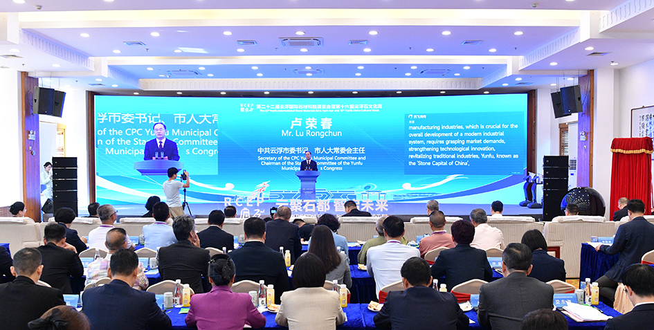 Lễ khai mạc Hội chợ Khoa học và Công nghệ vật liệu đá quốc tế Vân Phù lần thứ 22 và Tuần lễ văn hóa đá Vân Phù lần thứ 16. Ảnh: Vũ Giang