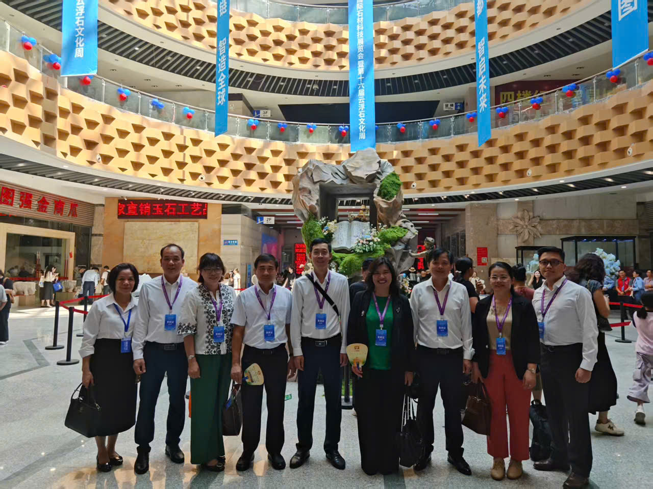Đoàn đại biểu tỉnh tại Trung tâm Giao dịch và Triển lãm Quốc tế Đá Vân Phù. Ảnh: Vũ Giang