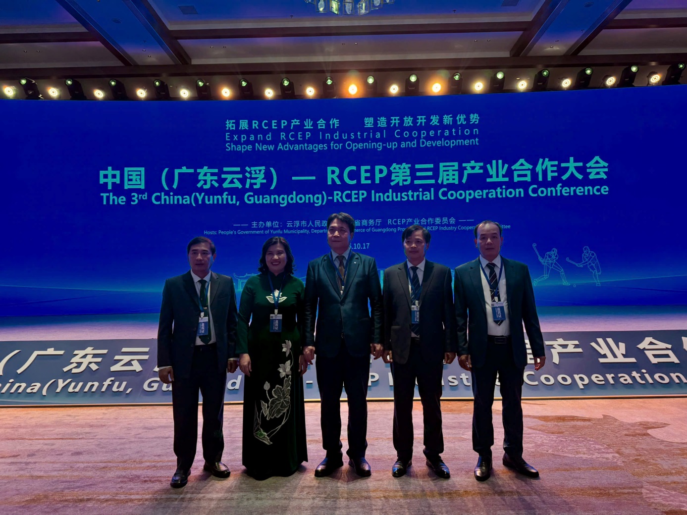 Đoàn tham dự Hội nghị Hợp tác Công nghiệp Trung Quốc - RCEP lần thứ 3 do Chính quyền Nhân dân thành phố Vân Phù, Sở Thương mại tỉnh Quảng Đông và Ủy ban Hợp tác Công nghiệp RCEP đồng chủ trì tổ chức với chủ đề “Mở rộng hợp tác công nghiệp RCEP, hình thành lợi thế mới về mở cửa và phát triển”, quy tụ hơn 500 đại biểu Trung Quốc và quốc tế.