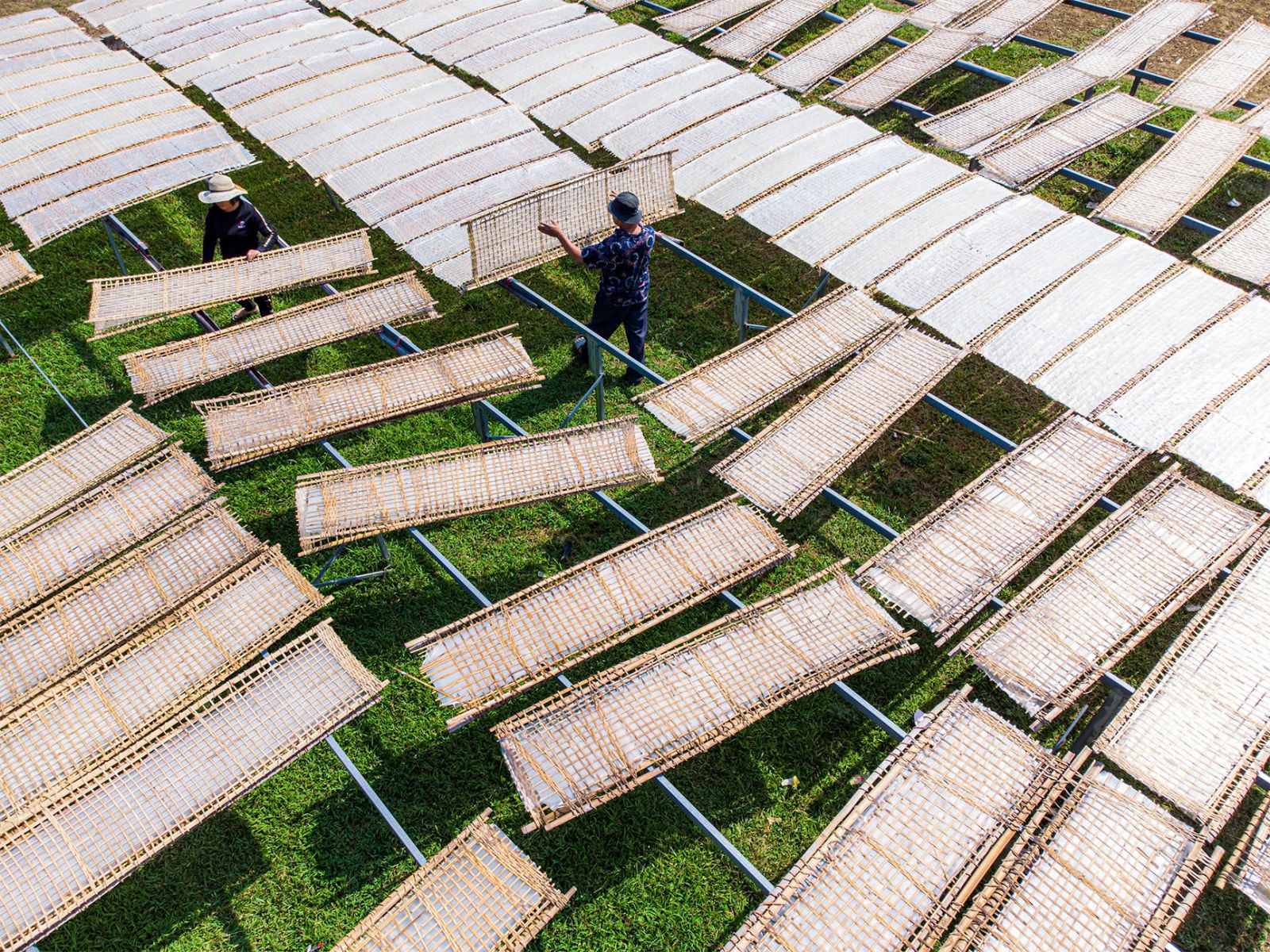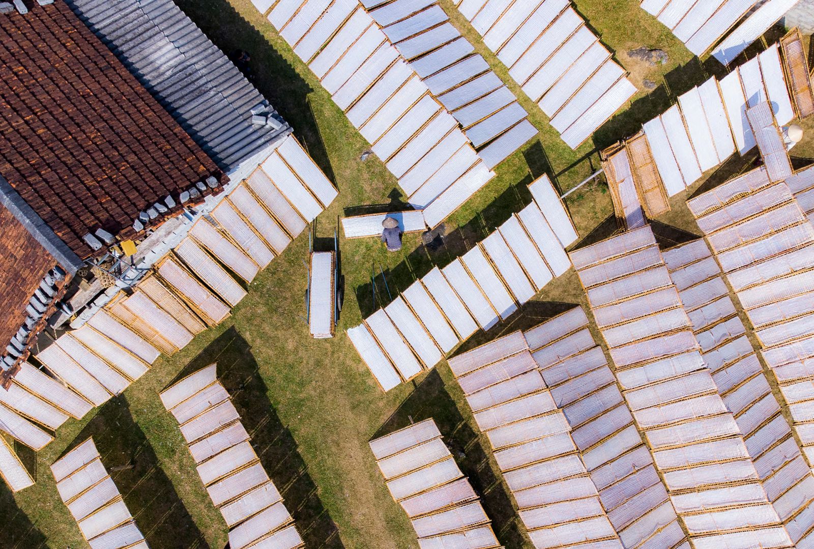 Những phên bánh tráng được phơi khô dưới nắng gió của Vạn Linh. Ảnh: Minh Chu.