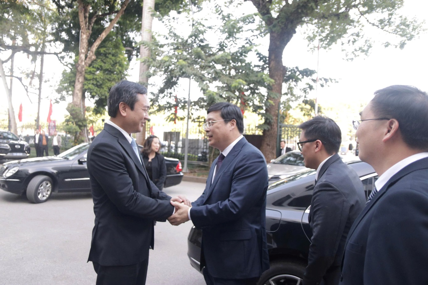 Đồng chí Nguyễn Cảnh Toàn, Chủ tịch UBND tỉnh đón đồng chí Vi Thao, Chủ tịch Chính quyền Quảng Tây.