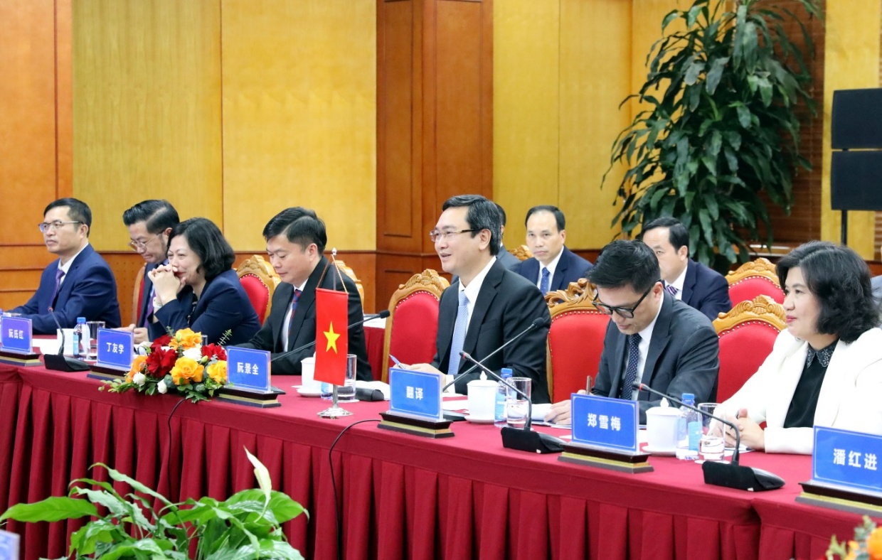 Đồng chí Chủ tịch Nguyễn Cảnh Toàn khẳng định, thời gian qua, hai Bên đã tiếp tục triển khai hiệu quả các hoạt động hợp tác trên nhiều lĩnh vực như: giao lưu nhân dân, văn hóa, thể thao, giáo dục, y tế, quản lý biên giới, phòng chống tội phạm… Đồng thời, hợp tác được mở rộng sang những lĩnh vực mới như chuyển đổi số, cửa khẩu thông minh, logistics, trí tuệ nhân tạo và kinh tế số. Đặc biệt, hợp tác kinh tế – thương mại giữa hai Bên được duy trì ổn định, đóng góp quan trọng vào tổng kim ngạch thương mại song phương Việt Nam – Trung Quốc. Về kết nối hạ tầng, hai Bên đã phối hợp nâng cấp, mở rộng các tuyến đường chuyên dụng vận chuyển hàng hóa tại khu vực biên giới; triển khai Đề án thí điểm xây dựng cửa khẩu thông minh tại cặp cửa khẩu quốc tế Hữu Nghị – Hữu Nghị Quan.