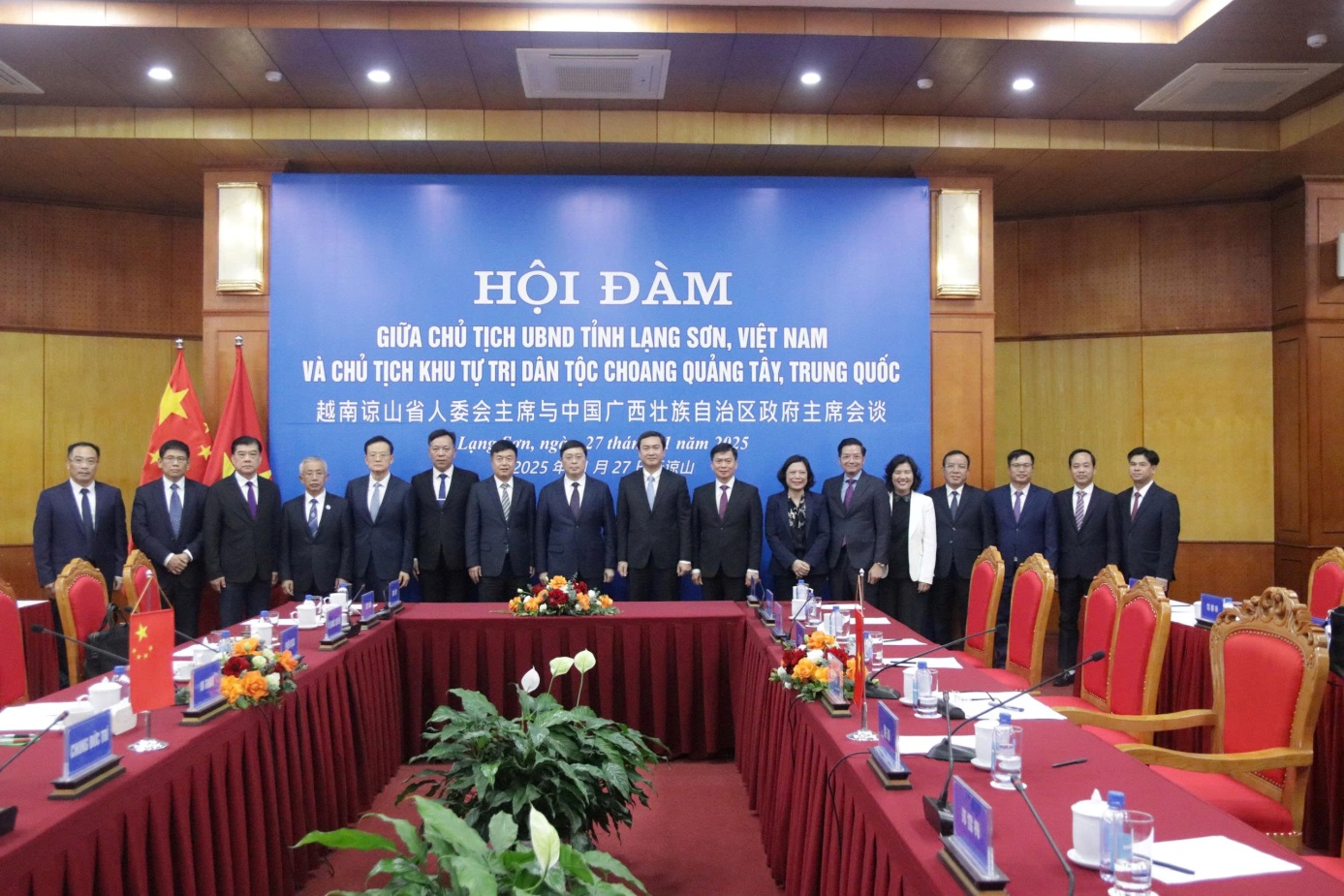 Trong khuôn khổ chuyến thăm, làm việc của Đoàn đại biểu Khu tự trị dân tộc Choang Quảng Tây, Trung Quốc tại Việt Nam, chiều ngày 27/11/2025, đồng chí Nguyễn Cảnh Toàn, Phó Bí thư Tỉnh uỷ, Chủ tịch UBND tỉnh đã đón tiếp và hội đàm với đồng chí Vi Thao, Ủy viên Ban Chấp hành Trung ương Đảng Cộng sản Trung Quốc, Phó Bí thư Khu ủy, Chủ tịch Chính quyền nhân dân Khu tự trị dân tộc Choang Quảng Tây, Trung Quốc.