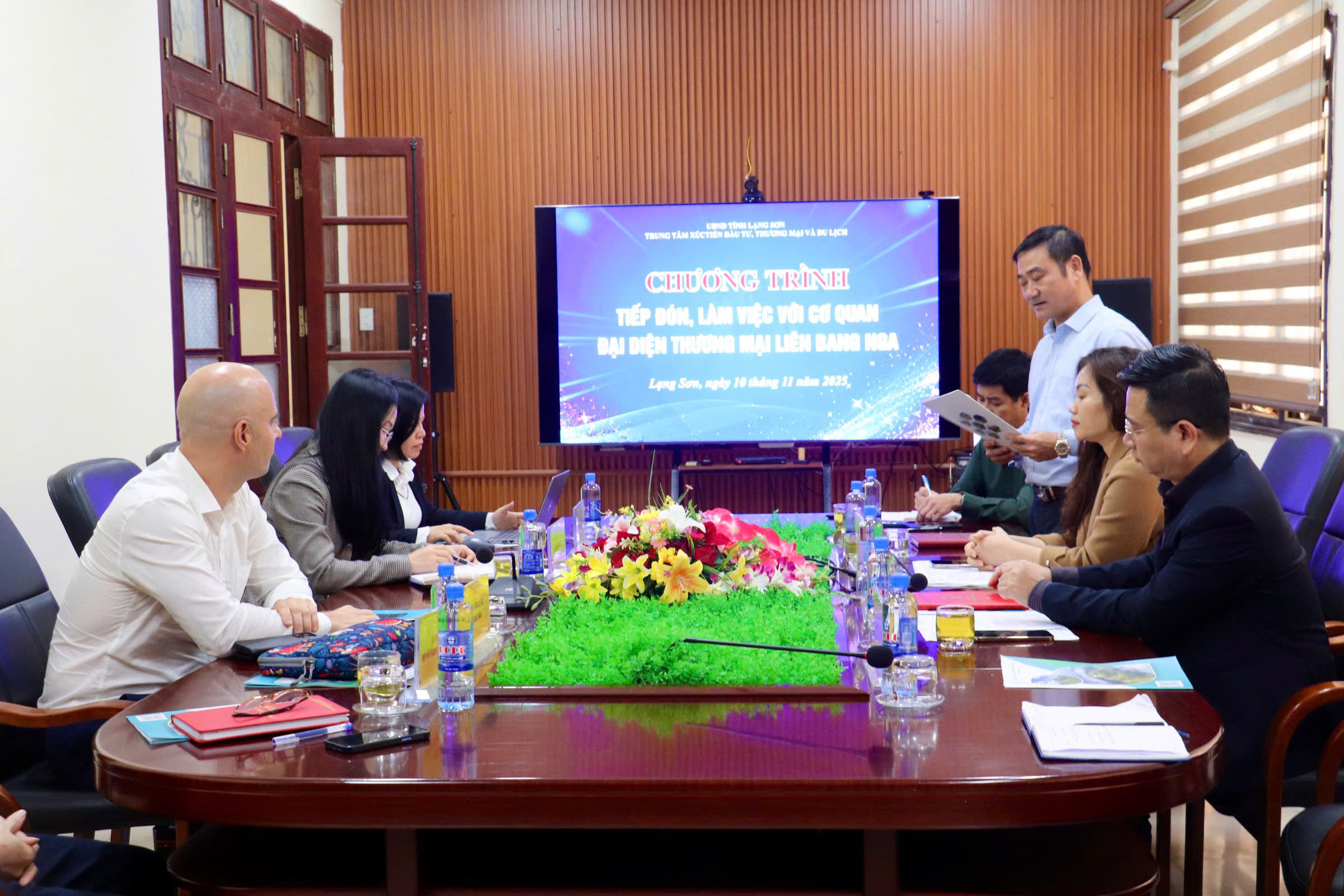 Ngày 13/11/2025, Trung tâm Xúc tiến Đầu tư, Thương mại và Du lịch tỉnh đã tiếp và làm việc với ông Kardo-Sysoev Aleksander, Phó Trưởng Cơ quan đại diện Thương mại Liên bang Nga tại Việt Nam, Phó Tổng Giám đốc Công ty AsterAuto Vietnam. Tham dự buổi làm việc có đại diện lãnh đạo Sở Tài chính, Sở Ngoại vụ, Sở Xây dựng, đại diện lãnh đạo Hiệp Hội Doanh nghiệp tỉnh.